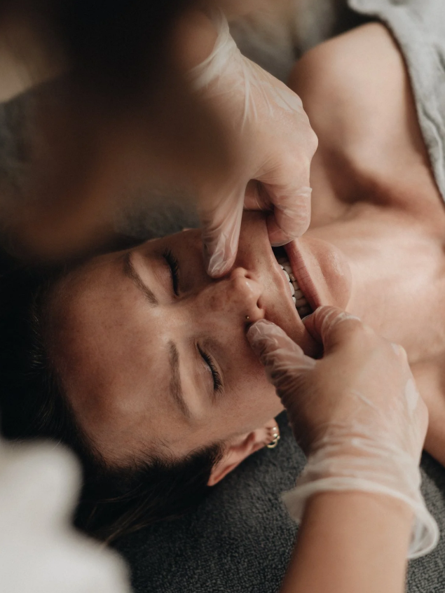 Deze unieke innovatieve gezichtsmassage richt zich op de diepere spieren en weefsels van mond, kaaklijn, wangen en hals. Een deel van de massage wordt van binnenuit de mond uitgevoerd, waardoor we de spieren bereiken die normaal moeilijk te behandelen zijn.